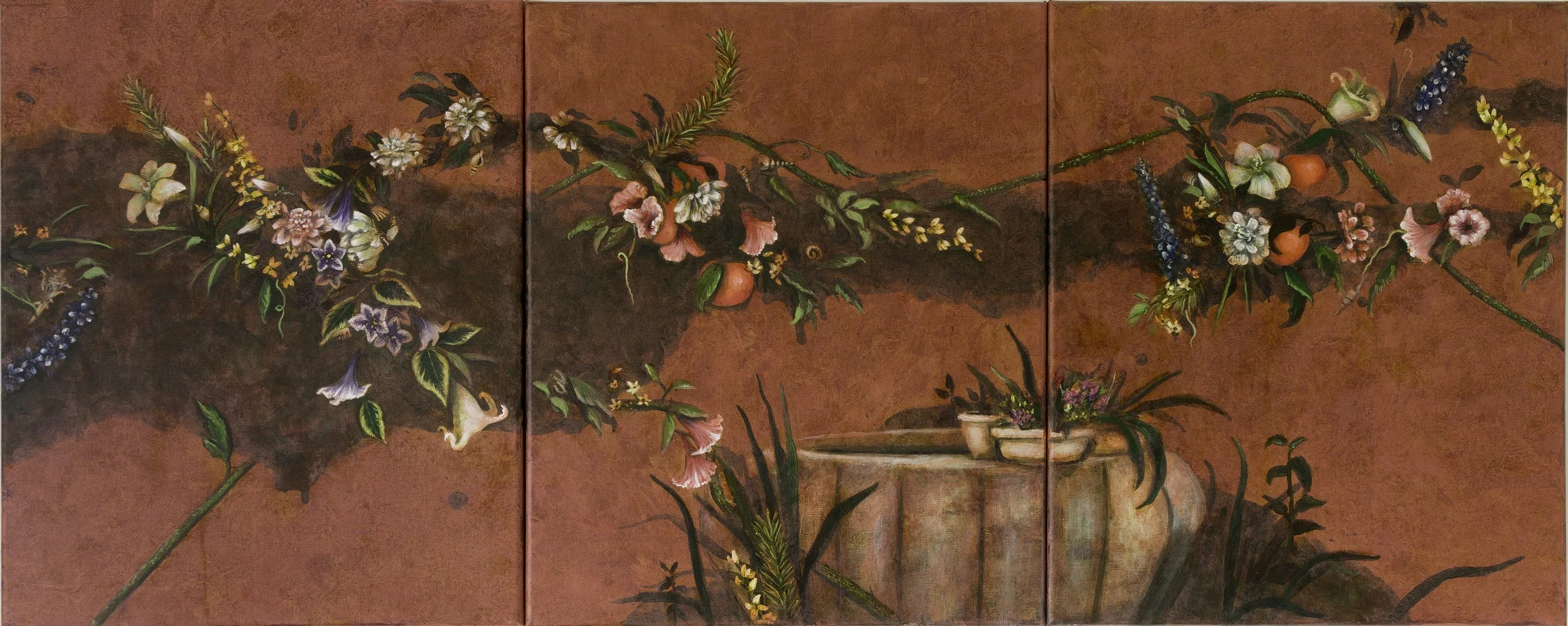 Fioriera, acrylic on linen, 150cm x 60cm (Triptych), 2023